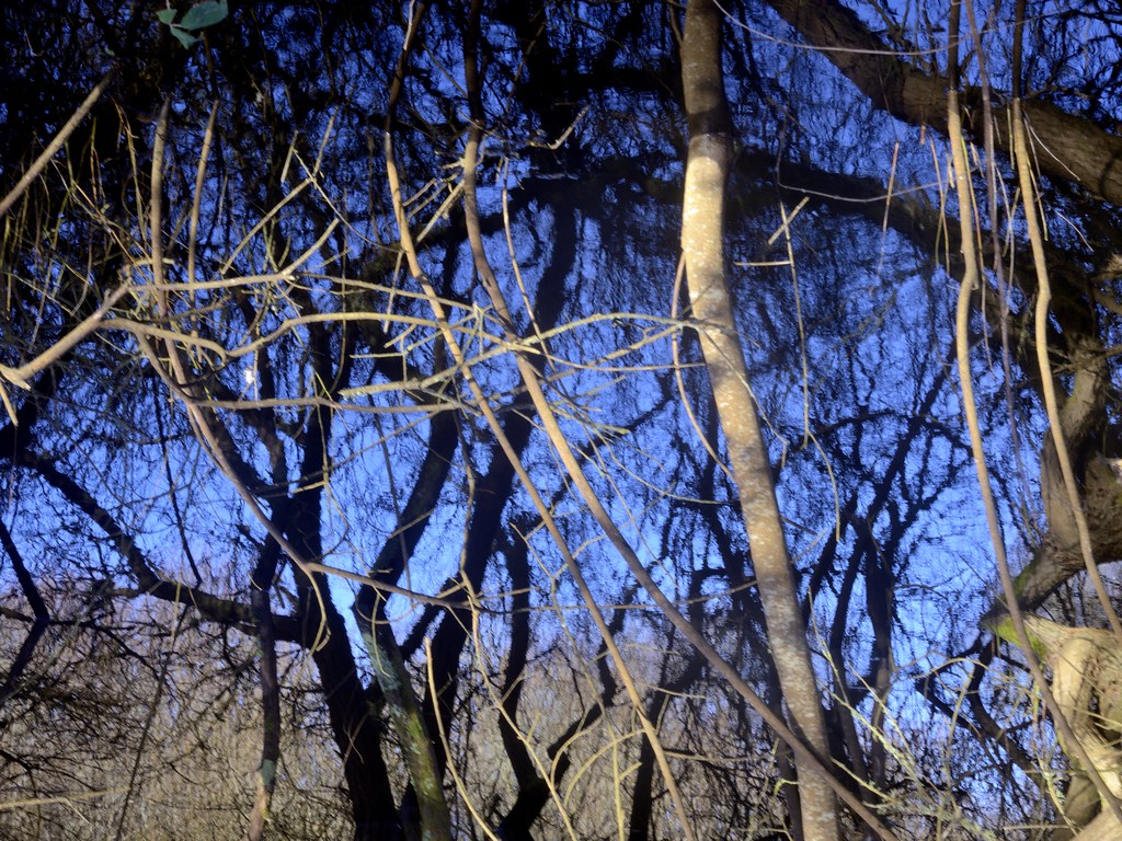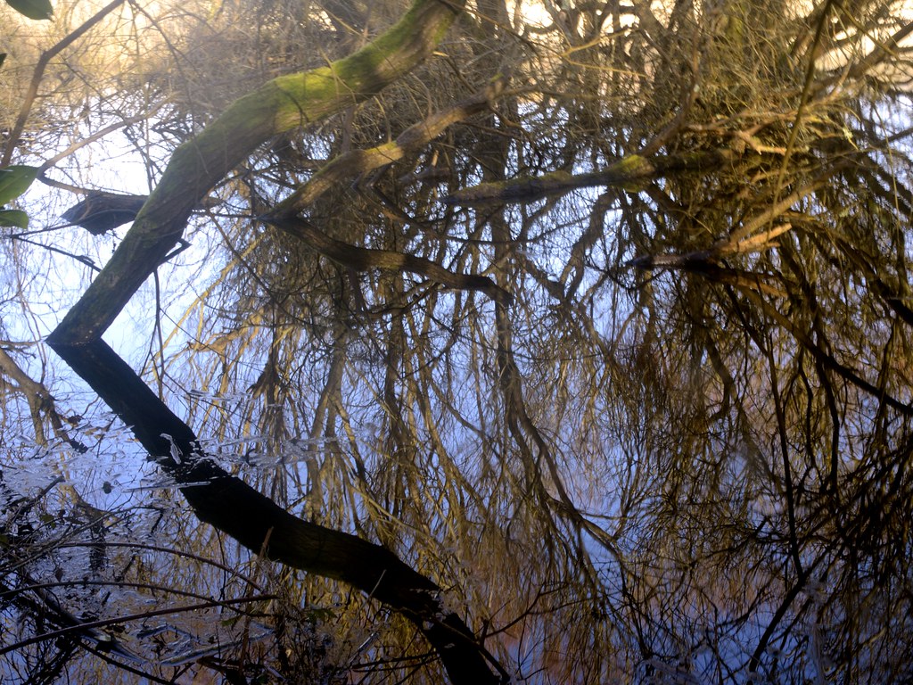 Un enchevêtrement végétal où les branches semblent se prolonger dans leur double liquide.